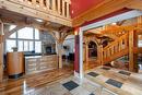 PRICED BELOW REPLACEMENT VALUE!! Here is your chance to be the proud owner of this magnificent home situated in the heart of Lorette Manitoba on RIVER LOT. Welcomed by gorgeous handcrafted timbers with acorn style carvings, making this home unlike any other. From antique cherry hardwood floors to Chef's kitchen featuring granite counters, island with butcher block, built-in wine cabinet, breakfast peninsula and accented stained glass wood cabinets. Great Room features 24ft ceilings and gorgeous stone facing/wood burning fire place. Very private Primary Bedroom is ideally located on main floor featuring walk-in closet and spa-like bathroom with deep soaker tub, tailed rain shower with glass doors. Main floor laundry with farmhouse sink. Screened-in porch adjacent to Great Room. Upper level offers 2 bedrooms, 5pc bath, Loft area and additional 2 upper lofts. Geothermal heating and cooling. OV garage with future bonus room. The versatility in space, craftsmanship, location cannot be beat!